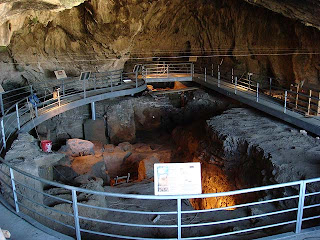 Paleoanthropologist Dr. N. Kiparissi has been excavating in the cave of Theopetra near Kalambaka for the past 25 years (another life’s work – see my blog 2 March) and amongst other discoveries revealed the remains of a wall (below) which had apparently been built to partially block the entrance to the cave.